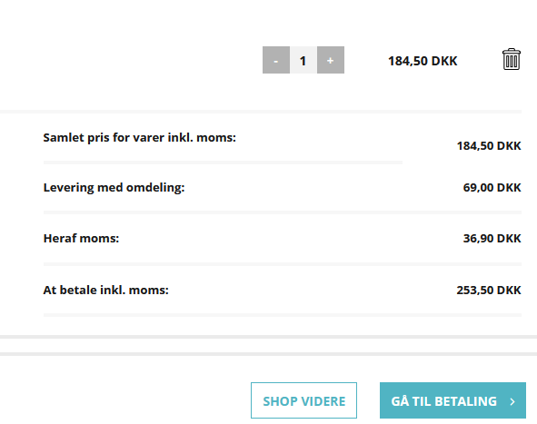 In the example bellow we are setting two different Freight Fee Values based on the sum of order. In first case we have Freight fee value of 69 DKK when the order is below 400 DKK and if it’s bigger than 400 DKK, the Freight fee value is 29.